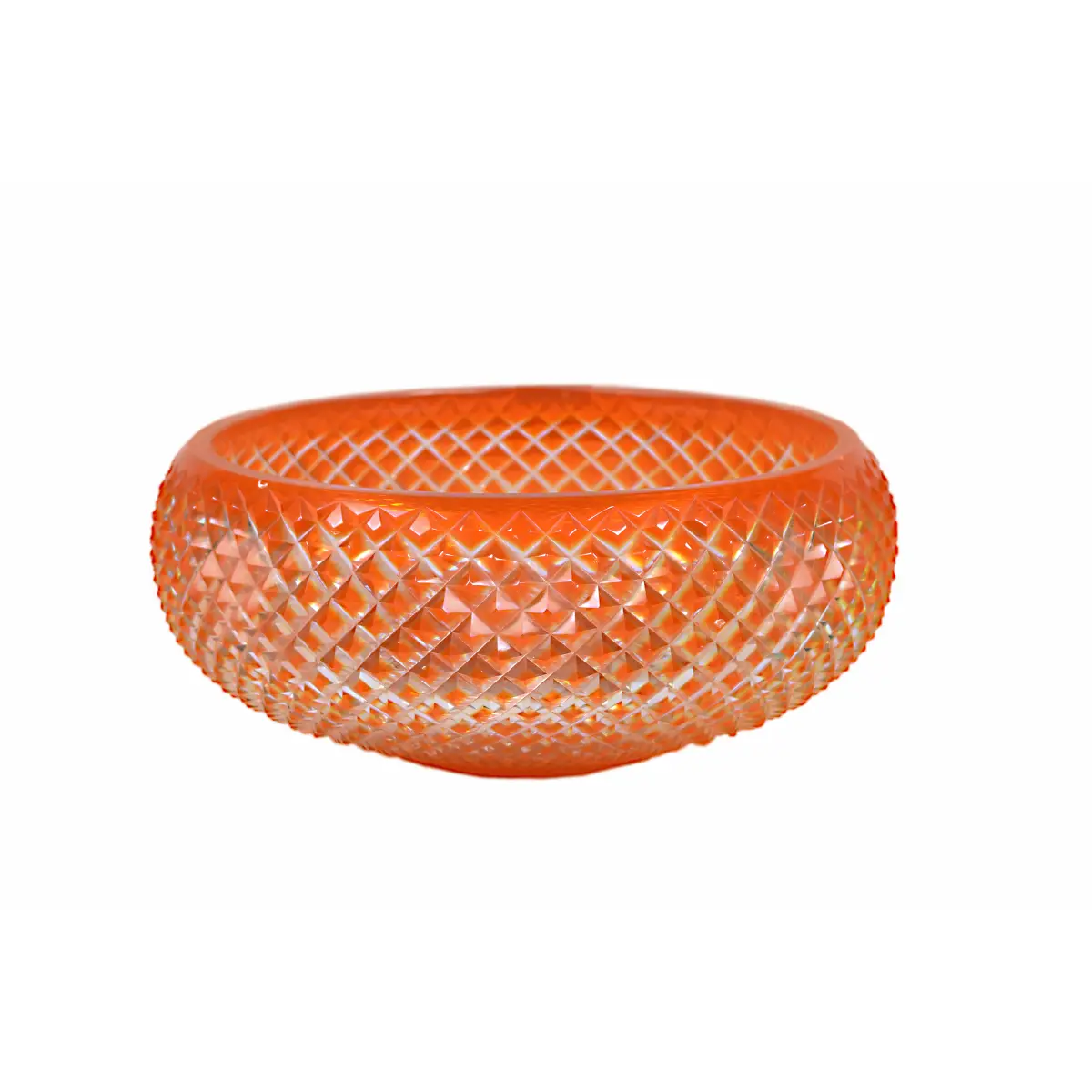 Bring warmth and brilliance to your table with this Amber Diamond Cut Crystal Serving Bowl. Expertly crafted with finely detailed diamond-cut patterns, this elegant bowl radiates a beautiful amber glow when it catches the light. Its wide, low-profile silhouette makes it perfect for serving dry fruits, snacks, or as a luxurious decorative centerpiece. A timeless piece that enhances both modern and classic home décor.